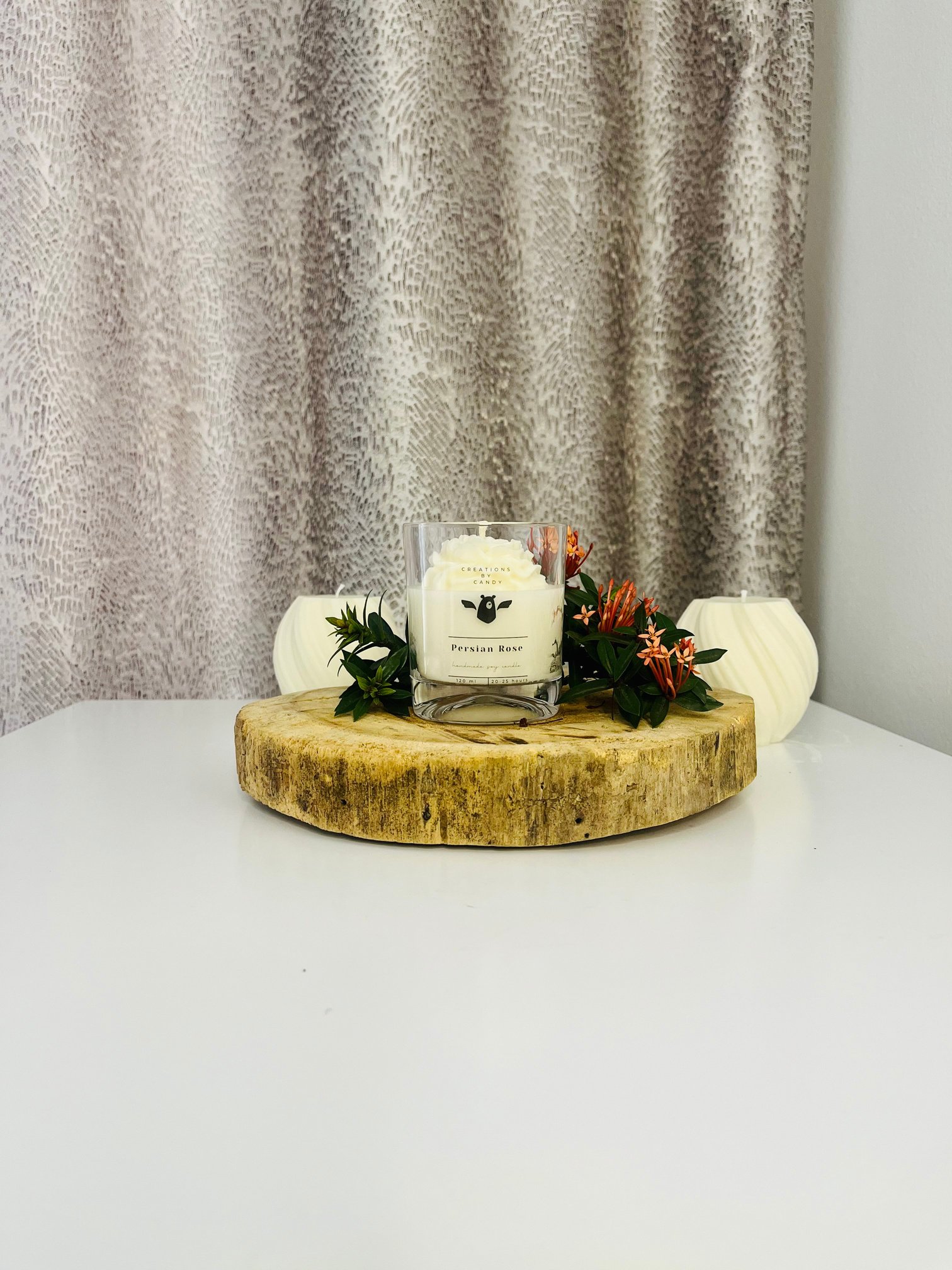 Creations by Candy has launched Candle making in 2023 and we are so excited to share our unique designs with you. Our Candle Jars are made with 100% soy wax and are eco friendly. Our pillar candles are made from a blend of paraffin and soy wax for a more appealing look.